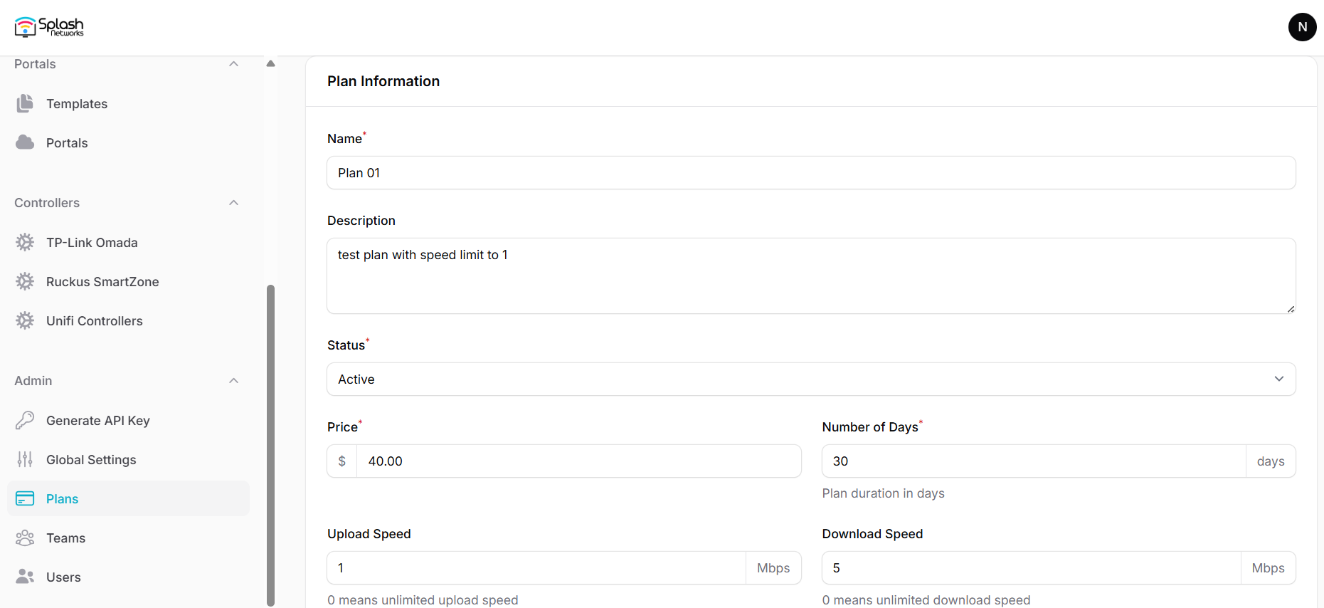 - Description: Optional description about the plan