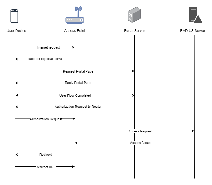To troubleshoot problems it is important to understand the components involved in the captive portal user authorization process and the interactions between them.