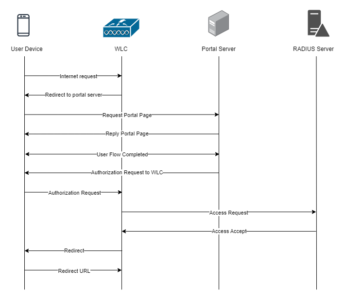 To troubleshoot problems it is important to understand the components involved in the captive portal user authorization process and the interactions between them.